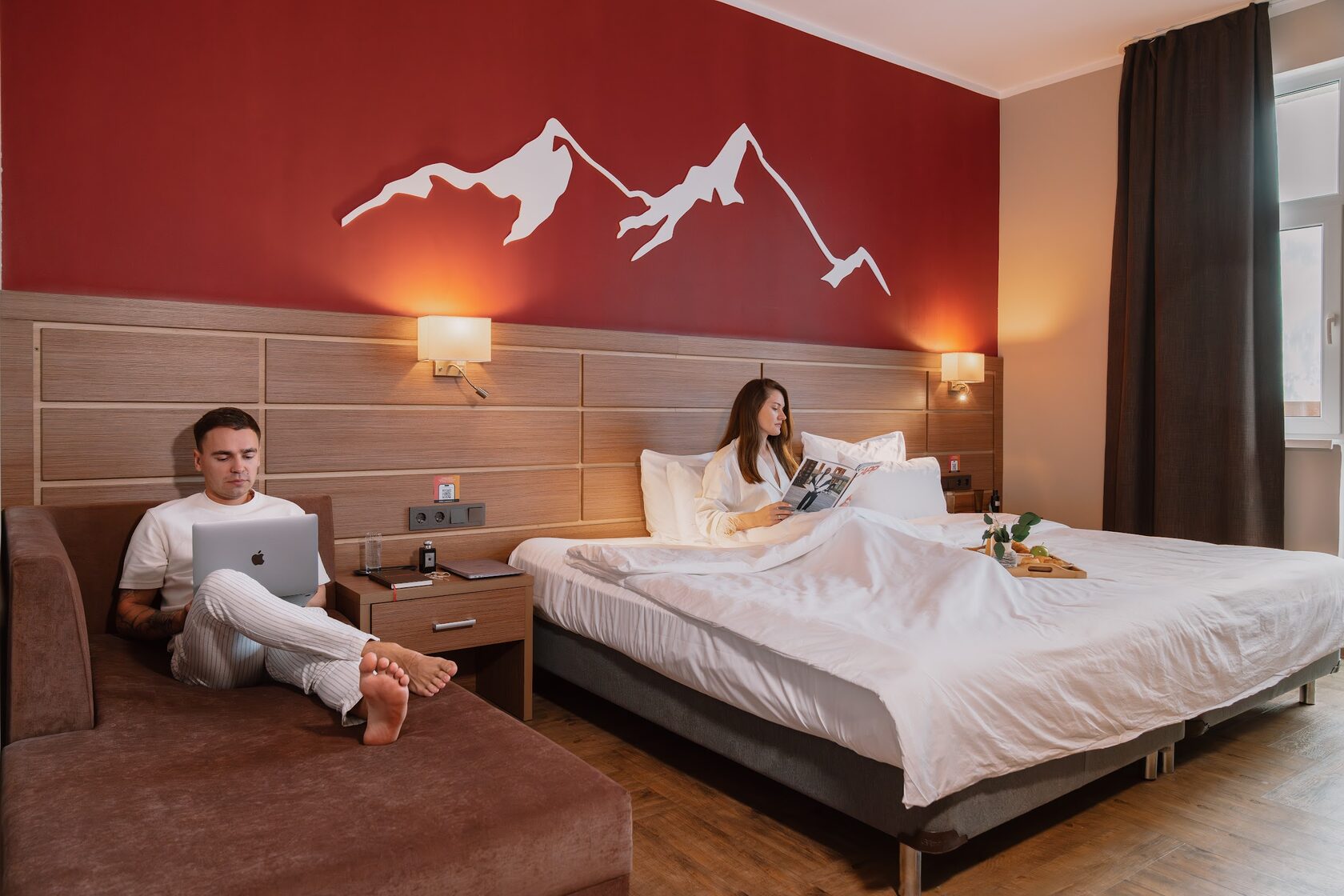 Маршруты для хайка, канатки, рестораны и магазины почти пустые, воздух свежий, а виды — как с открытки. Утром — горы, днём — горы, вечером — горы и глинтвейн. Но в любое время года просто приятно знать, что можешь получить больше, чем ожидал. Бронируй свой отдых в AYS Design прямо сейчас — и пусть судьба выберет, какой номер станет твоим.